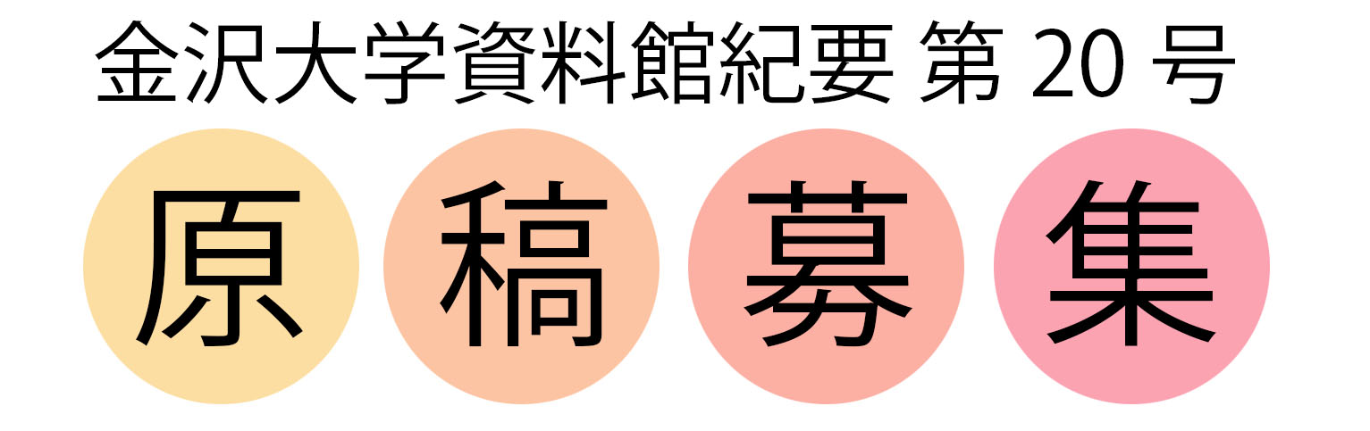 金沢大学資料館紀要第20号(令和7年3月発行予定)の原稿を次のとおり募集します。