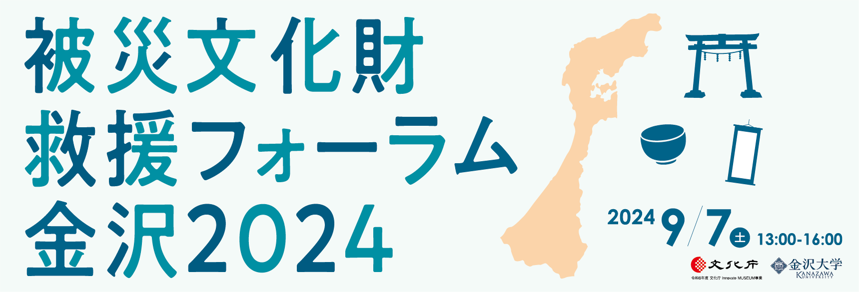 金沢大学資料館は,令和6年度文化庁文化芸術振興費補助金(Innovate MUSEUM事業)に採択され,「被災文化財救援フォーラム金沢2024」を開催いたします。