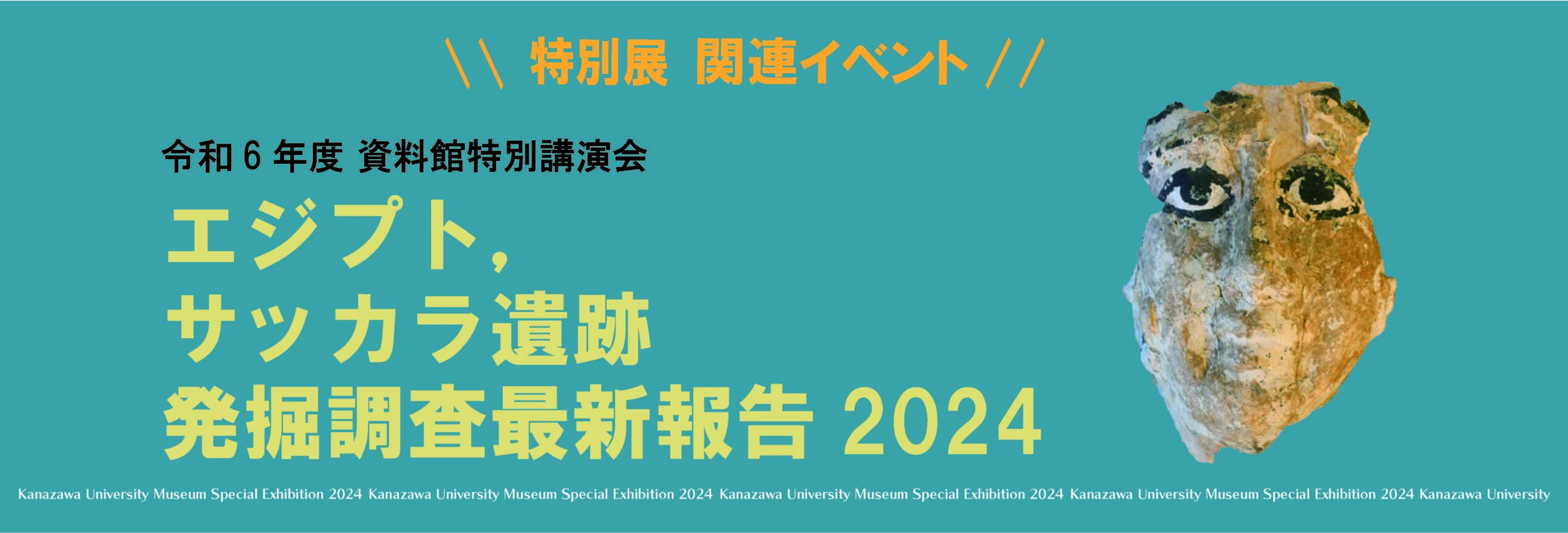 金沢大学資料館では,特別展「古代エジプト3000年の墓地を掘る-エジプト,サッカラ遺跡発掘調査最新報告展-」を開催中です。今回,その関連企画として特別講演会「エジプト,サッカラ遺跡発掘調査最新報告2024」を開催します。